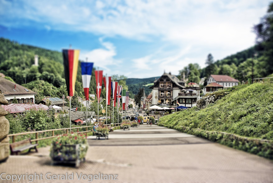 Originalfoto von Triberg im Schwarzwald bearbeitet zu einer Miniaturlandschaft